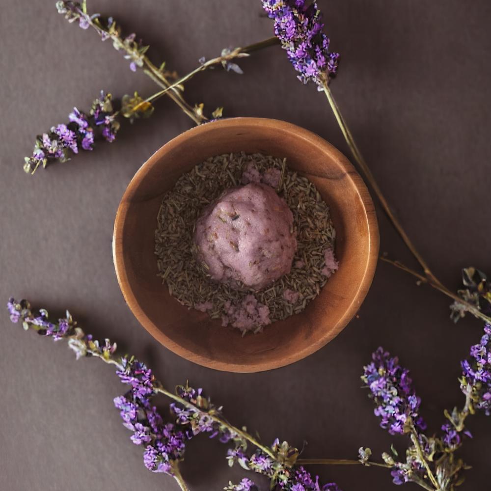 المكونات الرئيسية: لافندر، سكر، زبدة الشيا، زبدة المانجو.