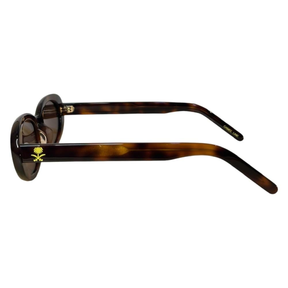 A brown round sunglasses shape with an ideal way to protect your eyes from the sun's rays, with a classic cut and a design inspired by our Saudi culture